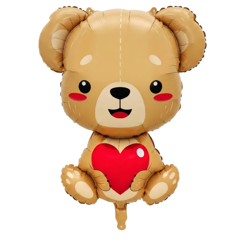 Balon foliowy MIŚ z czerwonym sercem 80x63cm - Urocza dekoracja na każdą okazję 🎈