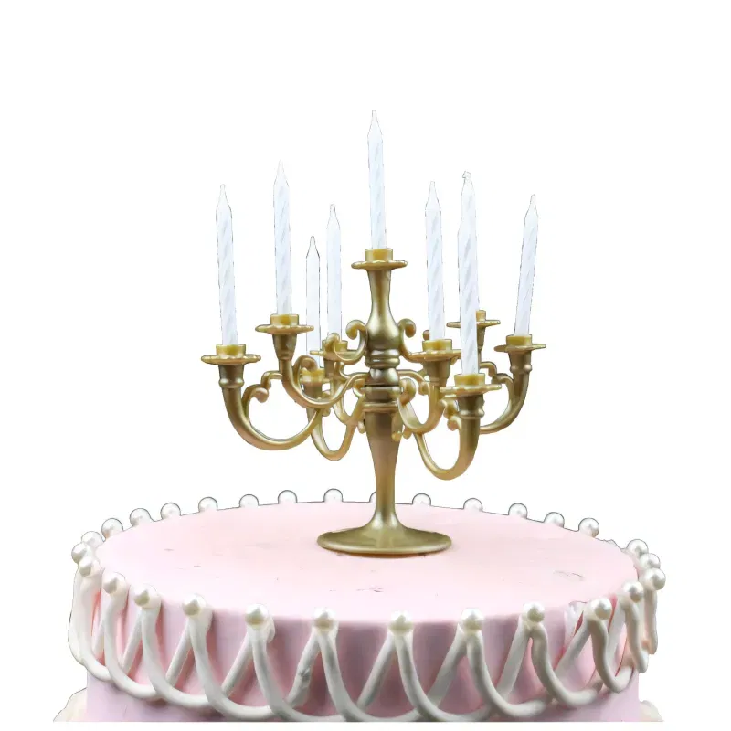 Nie czekaj, dodaj blasku każdemu kawałkowi tortu z Dekoracją na TORT złoty świecznik! Zamów już dziś i przenieś swoją imprezę na wyższy poziom! 🎉