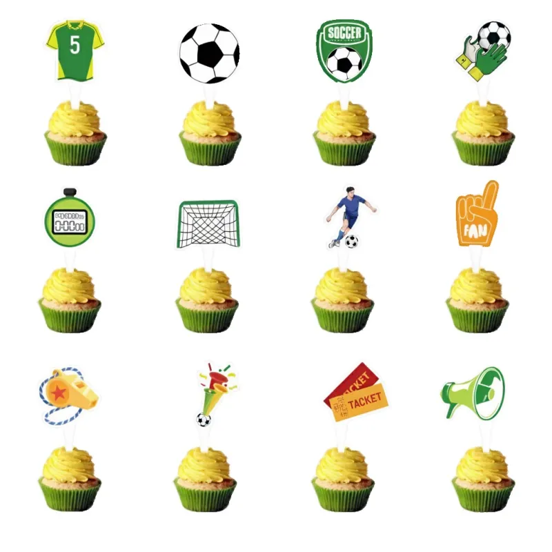 Twoje babeczki mogą stać się tematem rozmowy każdej imprezy, wystarczy kilka prostych trików! 🎈 Pikery piłkarskie podkreślą piłkarski charakter wydarzenia, dodając mu pazura i odrobinę zabawy. Niech każdy miłośnik piłki czuje się jak na prawdziwym meczu, nawet podczas słodkiego kącika! 🎂