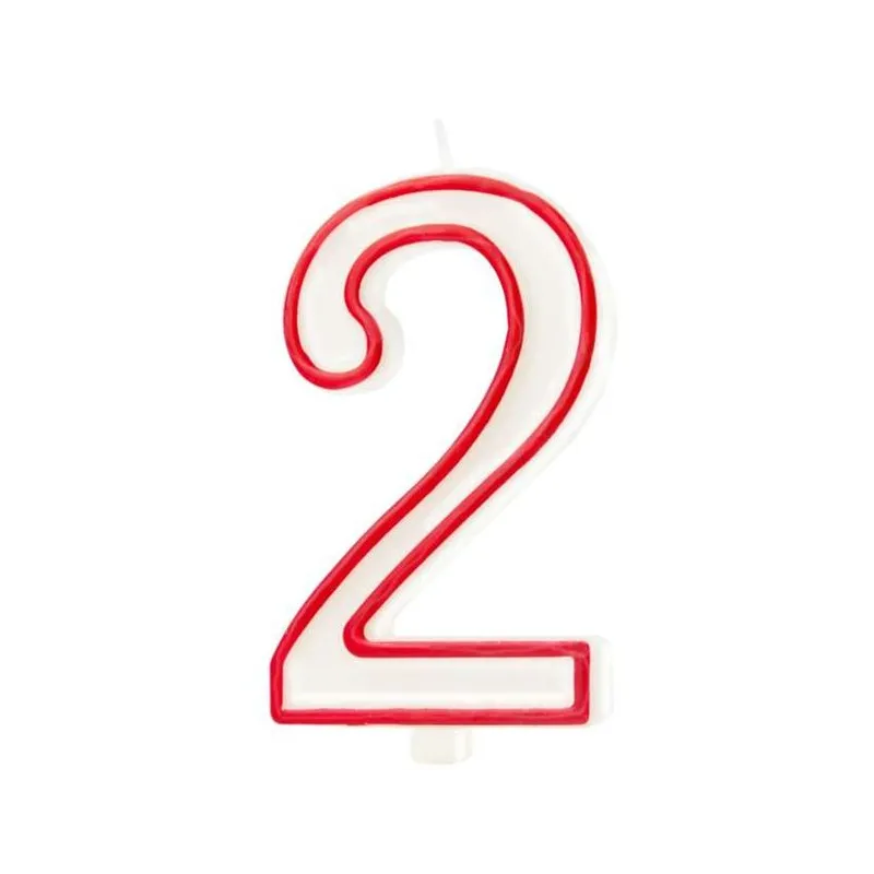 Świeczka 2, 12cm, czerwony kontur - Idealna na każdą imprezę!