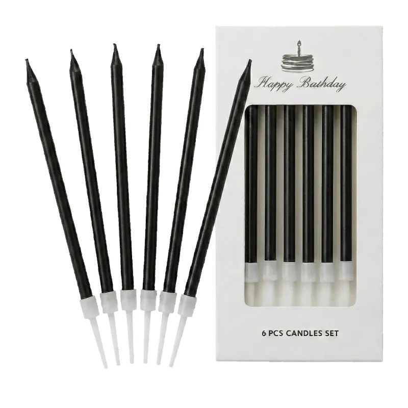Dzięki czarnym świeczkom dekoracyjnym każdy tort zyska na wyglądzie. 🎂 Są one idealne dla tych, którzy chcą dodać swojemu przyjęciu odrobinę oryginalności i nowoczesności. Długie świeczki na tort to must-have, który przyciągnie uwagę i zaskoczy gości!