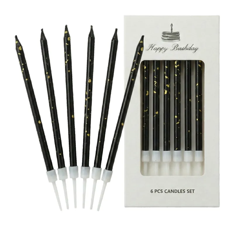 Świeczki dekoracja na TORT czarno złote długie 11 cm 6 szt